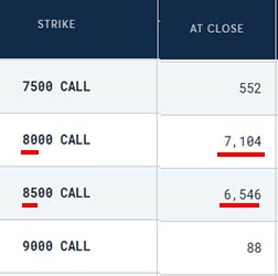- Les ordres CALL à 80 $ sont passés de 4 845 à 7 104 contrats.