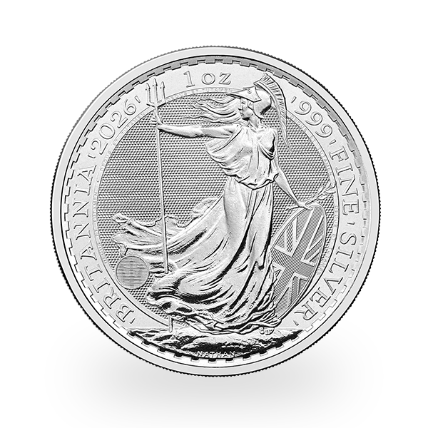 La pièce bullion Britannia 2026 est composée d’une once troy d’argent pur à 999‰, le plus haut degré de pureté en argent proposé par la Royal Mint.