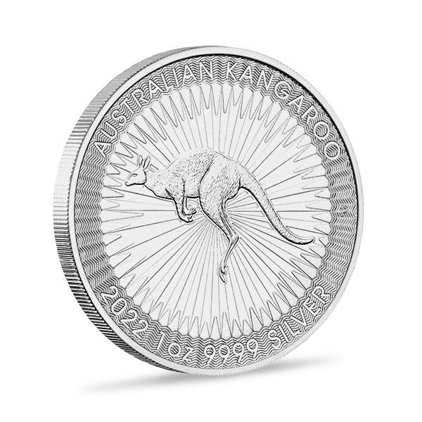 La pièce d'argent Kangourou 2022 fait perdurer la tradition, arborant un kangourou en train de sauter, encerclé par les rayons du soleil. Le revers comporte l'inscription ‘AUSTRALIAN KANGAROO’ et le poinçon ‘P’ de la Perth Mint – symbole d'excellence depuis 1899 – ainsi que le poids ‘1 oz’, la pureté ‘9999 SILVER’ et l'année ‘2022’.