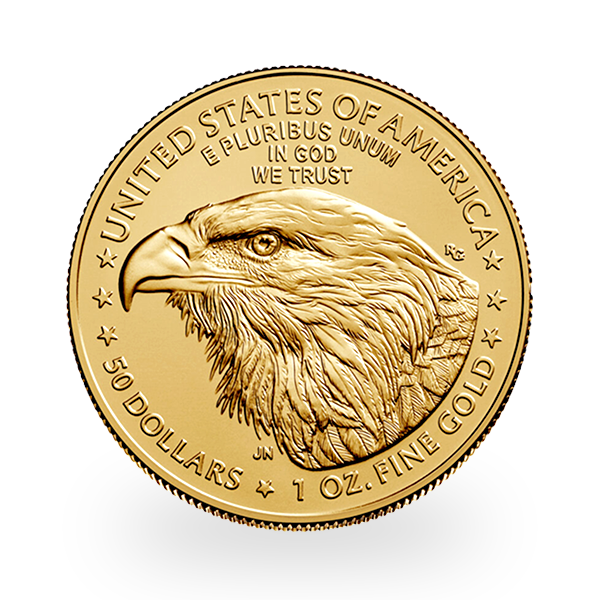 Le revers présente une saisissante image d’un Pygargue à tête blanche, symbole de force et de fierté nationale. Autour du motif figurent les inscriptions "UNITED STATES OF AMERICA", "E PLURIBUS UNUM" ("Un seul à partir de plusieurs"), "IN GOD WE TRUST" ("En Dieu nous croyons"), ainsi que la valeur faciale "50 DOLLARS" et la mention "1 OZ. FINE GOLD". Le design du revers a été conçu par l’artiste Jennie Norris, membre du programme Artistic Infusion de la Monnaie américaine, puis sculpté par l’artiste médailleur Renata Gordon.