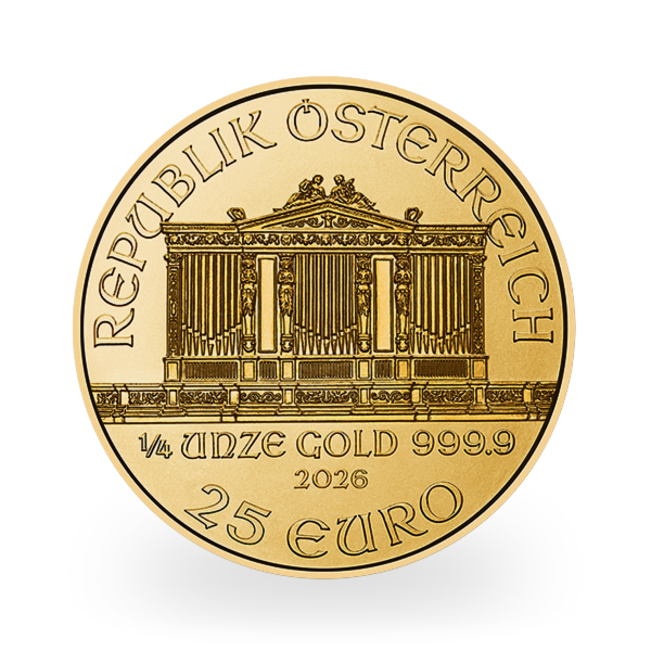 La pièce d'or Philharmonique de Vienne 2026 de 1/4 once est un chef-d'œuvre de raffinement et de précision, minutieusement frappée en or pur à 99,99% par la prestigieuse Monnaie autrichienne. Reconnue à l'échelle mondiale, elle marie qualité, beauté et histoire, faisant d'elle un choix privilégié pour les investisseurs et les collectionneurs.